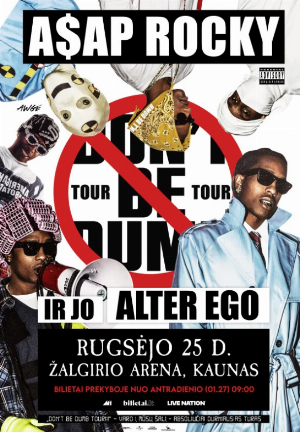 ![]() Amerikiečių superžvaigždė „A$AP Rocky“ pirmą kartą koncertuos Lietuvoje Šiandien „Live Nation Lithuania“ oficialiai patvirtino, jog vienas ryškiausių šiuolaikinės muzikos vardų „A$AP Rocky“ pirmą karta atvyksta į Lietuvą. Pasaulinio lygio repo superžvaigždė jau rugsėjo 25 dieną Kauno „Žalgirio“ arenoje surengs koncertinių gastrolių „A$AP Rocky - Don't Be Dumb World Tour“ šou. Šio turo metu „A$AP Rocky“ surengs net 21 pasirodymą didžiausiose Europos miestuose. Bilietus į „A$AP Rocky“ koncertą visose „Bilietai.lt“ kasose ir internete www.bilietai.lt bus galima įsigyti jau nuo kito antradienio (sausio 27 d.) 09:00 val. ryto. Diena anksčiau, nuo sausio 26 d. pirmadienio, 09:00 val. ryto įsigyti bilietus į renginį galės ir „Live Nation Lietuva“ klubo nariai. Užsiregistruoti į „Live Nation Lietuva“ klubą galima čia: www.livenation.lt „A$AP Rocky“, kurio tikrasis vardas Rakim Mayers, yra gerai žinomas atlikėjas, kūrėjas, aktorius, bei mados ikona. 2011 metais reperiui padarius tikrą proveržį, jis tapo viena vienu įtakingiausiu šiuolaikinės muzikos žvaigždžių. Amerikietis gali pasigirti ne tik surinkęs daugiau nei 25,7 mlrd. perklausų įvairiose muzikos klausymosi platformose, bet ir 8,8 mlrd. vaizdo klipų peržiūrų „YouTube“. A$AP Rocky - Praise The Lord (Da Shine) (Official Video) ft. Skepta https://www.youtube.com/watch?v=Kbj2Zss-5GY 2018 metais „A$AP Rocky“ įtvirtino savo, kaip vieno svarbiausių savo kartos atlikėjų, statusą – jo albumai „LONG.LIVE.A$AP“ ir „AT.LONG.LAST.A$AP“ debiutavo pirmose „Billboard 200“ topo vietose. Trečiasis studijinis albumas „TESTING“ sulaukė kritikų pripažinimo, perkopė 1 mlrd. perklausų ribą ir įsitvirtino „iTunes“ topų viršūnėse net 16-oje šalių. Vėlesni singlai, tarp jų „Babushka Boi“, „Praise The Lord“, „Same Problems?“, „RIOT (Rowdy Pipe’n)“, taip pat naujausi kūriniai „HIGHJACK“ ir „RUBY ROSARY“, atspindi nuolat besikeičiantį ir eksperimentinį atlikėjo skambesį. Per savo karjerą „A$AP Rocky“ taip pat bendradarbiavo su ryškiausiais pasaulinės muzikos vardais, tarp kurių - Rihanna, Kendrick Lamar, Drake, Skepta, Pharrell Williams, J. Cole, Tyler, The Creator, Frank Ocean, Lana Del Rey, Playboi Carti, FKA twigs, Miguel ir daugelis kitų. A$AP Rocky - I Smoked Away My Brain (I'm God x Demons Mashup) (Audio) ft. Imogen Heap, Clams Casino