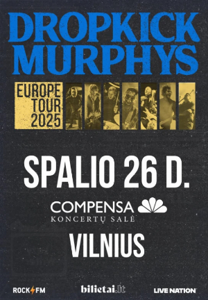 ![]() Keltų pankroko legendos „Dropkick Murphys“ surengs koncertą Vilniuje Amerikiečių Celtic-punk legenda „Dropkick Murphys“ šiandien pasidalino ypatinga naujiena: grupė atvyksta į Vilnių ir jau spalio 26 d. Vilniaus „Compensa“ koncertų salėje surengs vienintelį savo pasirodymą. Tai - ypatinga galimybė gyvai išgirsti neblėstančią energiją, uždegančius himnus ir autentišką Bostono dvasią spinduliuojančią muziką. Bilietus į „Dropkick Murphys“ koncertą visose „Bilietai.lt“ kasose ir internete www.bilietai.lt bus galima įsigyti nuo vasario 28 d. 10 val. ryto. Dviem dienomis anksčiau, nuo trečiadienio, 10:00 val. ryto, įsigyti bilietus į renginį galės ir „Live Nation Lietuva“ klubo nariai. Užsiregistruoti į „Live Nation Lietuva“ klubą galima čia: www.livenation.lt Dropkick Murphys - Rose Tattoo Nuo pogrindžio iki pasaulinės šlovės Nuo 1996 m. gyvuojantys „Dropkick Murphys“ yra tikri Bostono rokenrolo herojai, suvieniję punk energiją su airiško folkloro elementais. Jų muzika skamba sporto arenose, festivaliuose ir didžiausiose pasaulio scenose. Grupės diskografijoje – keturi iš eilės „Billboard“ Top 10 albumai: „Turn Up That Dial“, „11 Short Stories Of Pain & Glory“, „Signed and Sealed in Blood“, „Going Out In Style“. O 2005 m. išleistas albumas „The Warrior’s Code“ padovanojo visiems gerai žinomą hitą „I’m Shipping Up To Boston“, kuris tapo neatsiejama sporto renginių ir kino filmų dalimi. Per daugiau nei 25 metus trunkančią „Dropkick Murphys“ karjerą, grupė surengė šimtus koncertų visame pasaulyje, išpardavė arenas ir subūrė ištikimą gerbėjų armiją. Grupė taip pat garsėja inovatyviais sprendimais. 2020 m. pandemijos pradžioje, grupė viena pirmųjų įsitraukė į virtualius pasirodymus – jų koncertas „Streaming Outta Fenway“ pritraukė daugiau nei 5,9 mln. žiūrovų ir užėmė trečiąją vietą „Pollstar“ „Top 2020 Live Streams“ sąraše. O 2021 m. jų „St. Patrick’s Day Stream 2021…Still Locked Down“ tapo pirmuoju savaitės transliacijų sąraše, surinkęs daugiau nei milijoną peržiūrų. Dropkick Murphys – Sirens Nauja era – dar daugiau energijos „Dropkick Murphys“ gali pasigirti surinkusi daugiau nei pusę milijardo perklausų įvairiuose muzikos klausymosi platformose, grupė taip pat pardavė per 8 mln. albumų kopijų. 2022 m. grupė išleido pirmąjį akustinį albumą „This Machine Still Kills Fascists“, kuriame atgaivino legendinio Woody Guthrie nepublikuotas dainas. Po jo sekė „Okemah Rising“, o 2025-aisiais laukiamas dar vienas naujas albumas. Jau dabar gerbėjai gali išgirsti naujausią singlą „Sirens“ – pirmąįą būsimo albumo užuominą. Dropkick Murphys - I'm Shipping Up To Boston „Dropkick Murphys“ koncertą, spalio 26 d. „Compensa“ koncertų salėje, Vilniuje, pristato didžiausias renginių organizatorius Baltijos šalyse „Live Nation Lithuani ![]() |
