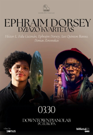 Viena ryškiausių jaunosios JAV džiazo kartos asmenybių – tenorinis saksofonininkas ir kompozitorius Ephraimas Dorsey. Baltimorėje gyvenantis muzikantas sparčiai kyla į tarptautinę sceną ir jau dabar koncertuoja su pasaulinio lygio žvaigždėmis – nuo José Jameso iki Kamasi Washingtono. Peabody instituto auklėtinis, buvęs prestižinio NYO Jazz orkestro narys, Dorsey atstovauja naujai džiazo bangai – drąsiai, šiuolaikiškai ir originaliai.