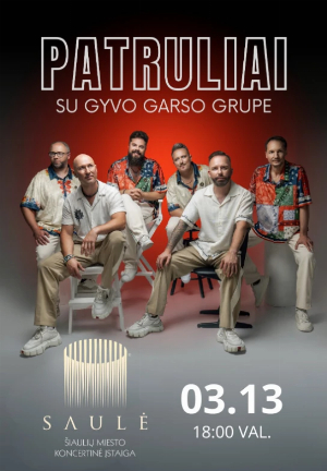 ![]() Po įspūdingo ir visoje Lietuvoje audringai sutikto jubiliejinio turo „20 metų – pasileidžiam plaukus!“ charizmatiškasis duetas Patruliai su gyvo garso grupe atvyksta į Šiaulius! Kovo 13 dieną susitikime Šiaulių koncertų salėje „Saulė“ atliksime išskirtinę koncertinę programą, kurioje skambės ne tik visiems puikiai pažįstamos, bet ir naujausi grupės kūriniai. Bilietus galite įsigyti BILIETAI LT kasose arba www.bilietai.lt