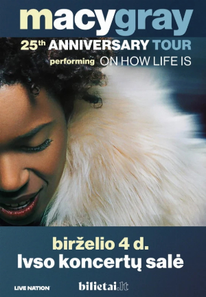 ![]() Macy Gray surengs nepamirštamą koncertą LVSO koncertų salėje Šiandien R&B/soul atlikėja, dainų autorė, muzikantė ir prodiuserė Macy Gray paskelbė pirmąsias savo turo „On How Life Is 25th Anniversary Tour“ datas. Oficialiai skelbiama, kad gastrolės neaplenkė ir Lietuvos – talentingoji dainininkė Macy Gray jau birželio 4 d. surengs koncertą LVSO koncertų salėje, Vilniuje. Atlikėjos gerbėjai turės ypatingą progą išgirsti unikalų jos balsą ir paminėti net 25-erių metų debiutinio albumo „On How Life“ sukaktį. Bilietus į Macy Gray koncertą visose „Bilietai.lt“ kasose ir internete www.bilietai.lt bus galima įsigyti nuo šio penktadienio (vasario 7 d.) 10:00 val. ryto. Diena anksčiau, nuo ketvirtadienio, 10:00 val. ryto įsigyti bilietus į renginį galės ir „Live Nation Lietuva“ klubo nariai. Užsiregistruoti į „Live Nation Lietuva“ klubą galima čia: www.livenation.lt Macy Gray - I Try https://www.youtube.com/watch?v=WEQ0l_m3Xm0 Macy Gray išgarsėjo visame pasaulyje 1999 m., kai jos hitas „I Try“ tapo vienu perkamiausių singlų, pelnė „Grammy“ apdovanojimą ir pavertė ją tarptautine žvaigžde. Per daugiau nei du dešimtmečius ji išleido dešimt studijinių albumų, bendradarbiavo su tokiais muzikos grandais kaip „Erykah Badu“, „OutKast“, „Ariana Grande“, „Carlos Santana“ ir daugeliu kitų. Jos balsas – nepamirštamas. Unikalus, šiek tiek prikimęs ir emocingas tembras suteikia dainoms ypatingą skambesį, dėl kurio Macy Gray muzika yra lengvai atpažįstama ir mylima visame pasaulyje. Ji meistriškai jungia soul, jazz, R&B ir net funk muzikos elementus, o jos koncertai – tai daugiau nei tik pasirodymai, tai tikros emocijų kelionės. Be muzikos, Macy Gray taip pat garsėja kaip aktyvi socialinių ir žmogaus teisių gynėja. Ji nuolat kelia klausimus apie rasinę lygybę, moterų teises ir psichikos sveikatos problemas, įkūrė ne vieną socialinę iniciatyvą, skirtą padėti jaunimui ir socialiai pažeidžiamoms bendruomenėms. Jau šį birželį, LVSO koncertų salėje skambės didžiausi Macy Gray hitai, taip pat naujausi kūriniai iš jos albumų, kuriuos atlikėja išleido pastaraisiais metais. 2022 m. Macy Gray kartu su „The California Jet Club“ išleido albumą „Christmas with You“, kuriame pristatė šventines dainas su savitu skambesiu. 2023 m. ji išleido albumą „The Reset“, kuriame yra tokie kūriniai kaip „The Disco Song“ ir „Thinking of You“. Šie nauji kūriniai atspindi Macy Gray gebėjimą nuolat atsinaujinti ir stebinti klausytojus savo kūrybiškumu. Vienintelis Macy Gray koncertas Lietuvoje įvyks 2025-ųjų metų birželio 4-ąją dieną LVSO koncertų salėje, Vilniuje. „Grammy“ laureatės pasirodymą pristato didžiausias renginių organizatorius Baltijos šalyse „Live Nation Lietuva‘‘. Macy Gray – „Meet & Greet“ bilietas Bilietas apima: