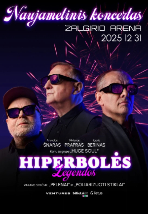 ![]() Naujųjų metų koncertas Kauno „Žalgirio“ arenoje – „Hiperbolės legendos“ su visų laikų hitais ir arenine produkcija. Per pastaruosius sezonus „legendos“ sugrįžo į didžiąsias scenas, pristatė jubiliejinę programą ir 2025 m. pavasarį apvažiavo penkias arenas. Gruodžio 31-ąją ši energija grįžta į „Žalgirio“ areną: publikos lauks „Pamiršk mane“, „Tu grok“, „Sugrįžk“, „Vandens ženklai“, „Aš dar dainuosiu“ ir kiti kūriniai. Vakarą papildys „Huge Soul“, o ypatingi svečiai – „Pelenai“ ir „Poliarizuoti stiklai“. Tai – metų pabaigos šventė, jungianti kelias kartas. Organizuoja „Ventures Events“. Bilietus galite įsigyti BILIETAI LT kasose arba www.bilietai.lt