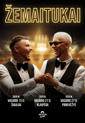 ![]() Didžiausią karjeros koncertą sausakimšoje Kauno „Žalgirio“ arenoje surengę „Žemaitukai“ skelbia apie naujus didžiulius pasirodymus 2026 metų pradžioje: vasario 13 d. „Šiaulių“ arenoje, vasario 21 d. Klaipėdos „Švyturio“ arenoje bei vasario 27 d. Panevėžio „Kalnapilio“ arenoje. „Beprotiškai ačiū, kad klausote, kad palaikote, kad siunčiate mums tiek daug gražių laiškų ir žinučių. Nunešėm „Žalgirio“ arenos stogą, bet tai tik pradžia. Žinom, kad turime draugų visoje Lietuvoje, todėl kviečiame visus į dar tris velniškai gerus koncertus“, – teigia Linas ir Ovidijus. Raketos greičiu į Lietuvos muzikos Olimpą kylantys „Žemaitukai“ laimėjo M.A.M.A. Metų tradicinės popmuzikos grupės statulėlę ir pelnė net tris „Lietaus“ metų apdovanojimus, bet tikrai nežada sustoti ir kuria naują muziką bei idėjas, kaip žiūrovams padovanoti dar geresnius šou. Talentingieji „Žemaitukai“ muziką kuria ne tik sau, bet ir kitoms grupėms, o taip pat darbuojasi kartu su atlikėjomis Natalija Bunke ir Simona Naine („Niekšėmis“) bei Adrina. Grupės kūryba „Spotify“ platformoje renka šimtus tūkstančių perklausų, o vaizdo klipai „Youtube“ skaičiuoja milijonus peržiūrų. „Žemaitukų“ sėkmė yra savotiškas fenomenas Lietuvos muzikoje, tačiau kitaip ir būti negalėjo. Linas ir Ovidijus – be galo darbštūs ir talentingi, bet visada išlieka nuoširdūs, pozityvūs ir paprasti, už ką žmonės juos taip vertina. Nuostabu matyti, kaip jų svajonės tampa realybe“, – teigia didžiuosius „Žemaitukų“ koncertus organizuojančios įmonės „Seven Live“ vadovas Tomas Inčikas. Įspūdingi areniniai „Žemaitukų“ šou vyks 2026 metų pradžioje: vasario 13 d. „Šiaulių“ arenoje, vasario 21 d. Klaipėdos „Švyturio“ arenoje bei vasario 27 d. Panevėžio „Kalnapilio“ arenoje. Vieša bilietų prekyba startuoja 2025 m. vasario 28 d. Bilietus galite įsigyti BILIETAI LT kasose arba www.bilietai.lt